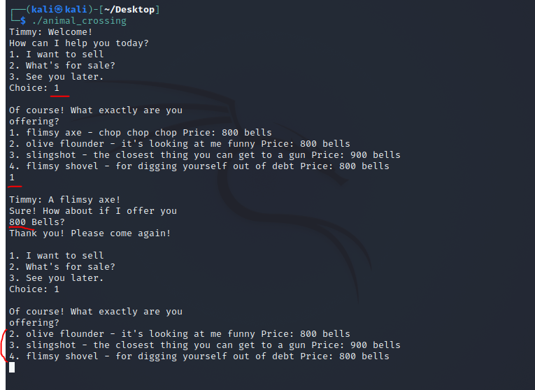 p.sendline(b'1') #flimsy axe 팔아서 인벤토리 한칸 비우기