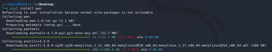 pip3 intsall pwn 명령어로 쉽게 설치할 수 있다.