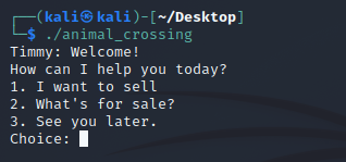 animal_crossing 이라는 ELF 파일이 하나 주어진다.