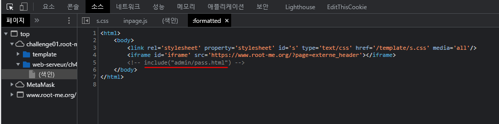 소스 탭에서 웹 소스를 확인해보니 주석으로