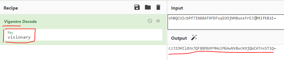 뭔가 인코딩된 값이 나오고, 뒤에는 key=visionary 라는 문자가 보인다.