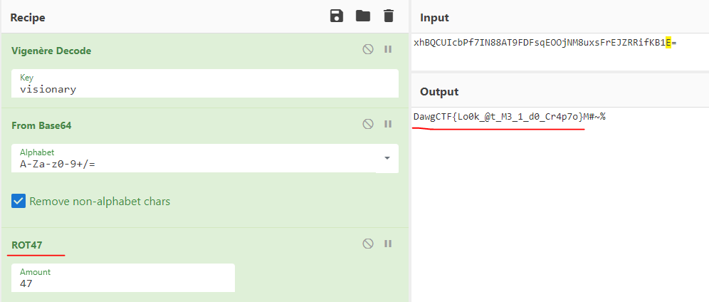 ROT47을 이용해서 디코딩을 해보면 플래그가 나온다.