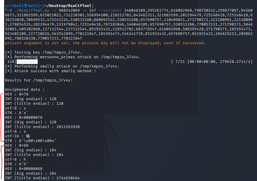 python3 ./RsaCtfTool.py -n n값 -e e값 --uncipher c값들