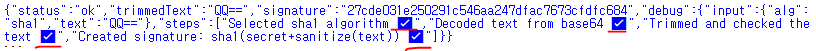 signature 와 debug 라는 값이 추가되어 응답이 오고있는게 보인다.