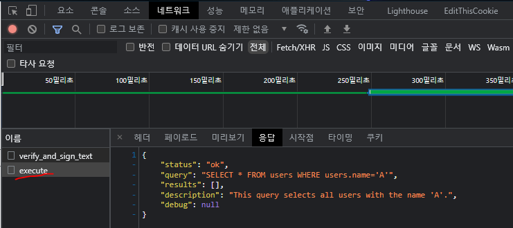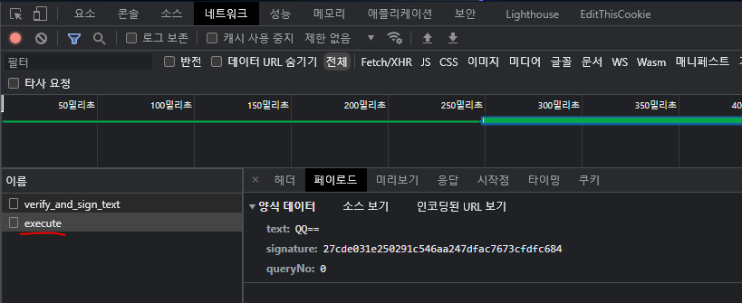 훔쳐온 signature 값을 포함해서 다시한번 /execute로 패킷을 보내준다.
