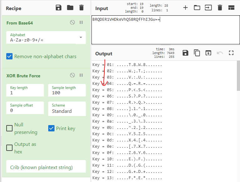 Cyberchef에는 XOR key를 brute force 해주는 기능이 있다.