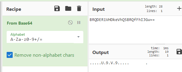 CyberChef(https://gchq.github.io/CyberChef)에 가서 base64로 디코딩을 해본다.