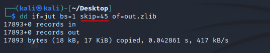 skip로 zlib 데이터가 시작하는 45부터 복사하도록 해준다.