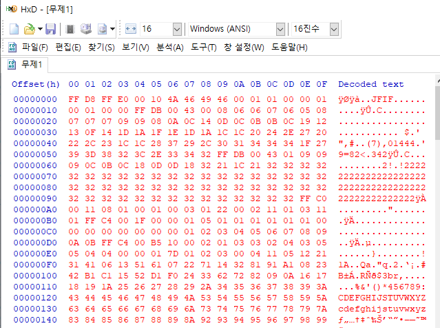 출력된 16진수 값에서 ffd8을 찾아준다.