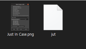 이렇게 압축이 풀리면서 png 파일 하나와 jut 라는 이름의 이상한 파일이 나오게 된다.
