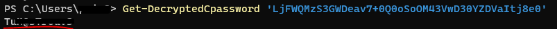 Get-DecryptedCpassword 'LjFWQMzS3GWDeav7+0Q0oSoOM43VwD30YZDVaItj8e0'