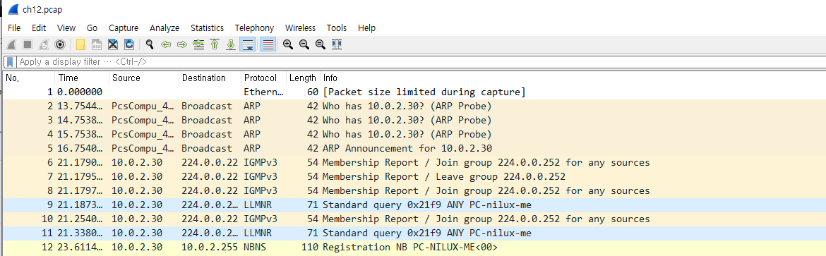 주어진 c12.pcap 파일은 Wireshark를 이용해서 열어볼 수 있다.