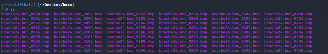조금만 기다리면 이렇게 수많은 bmp 파일이 추출되어 나온다.