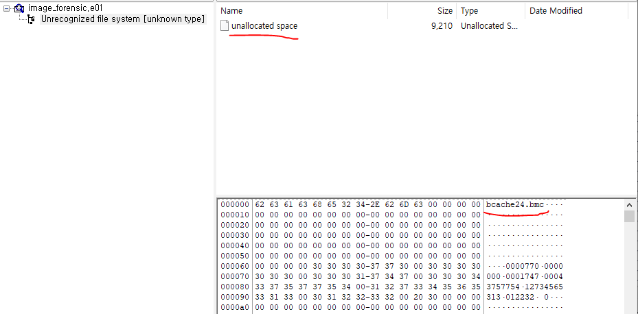 이미지를 열어보면 그 안에 unallocated space 라는 부분이 있고,