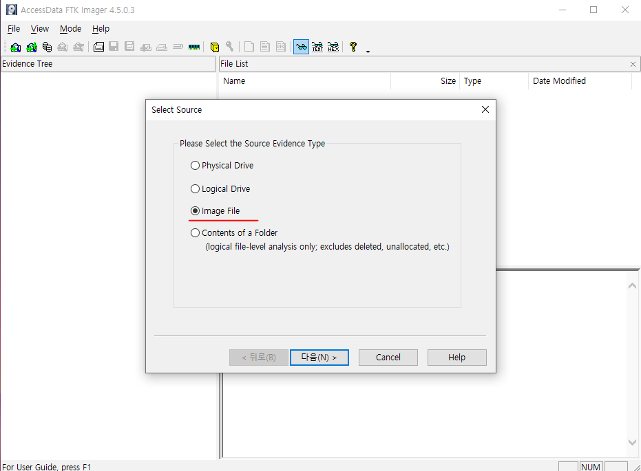 FTK Imager를 실행시켜서 lmage File을 선택해준다.