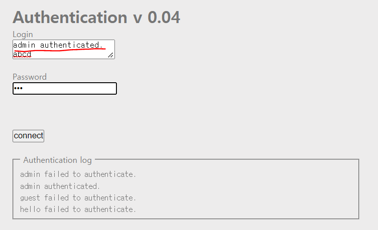 connect 버튼을 누르면 로그인이 성공한것처럼 로그가 조작되면서