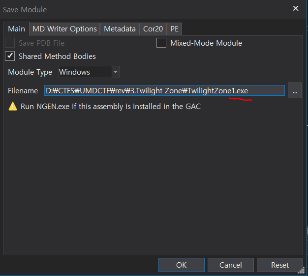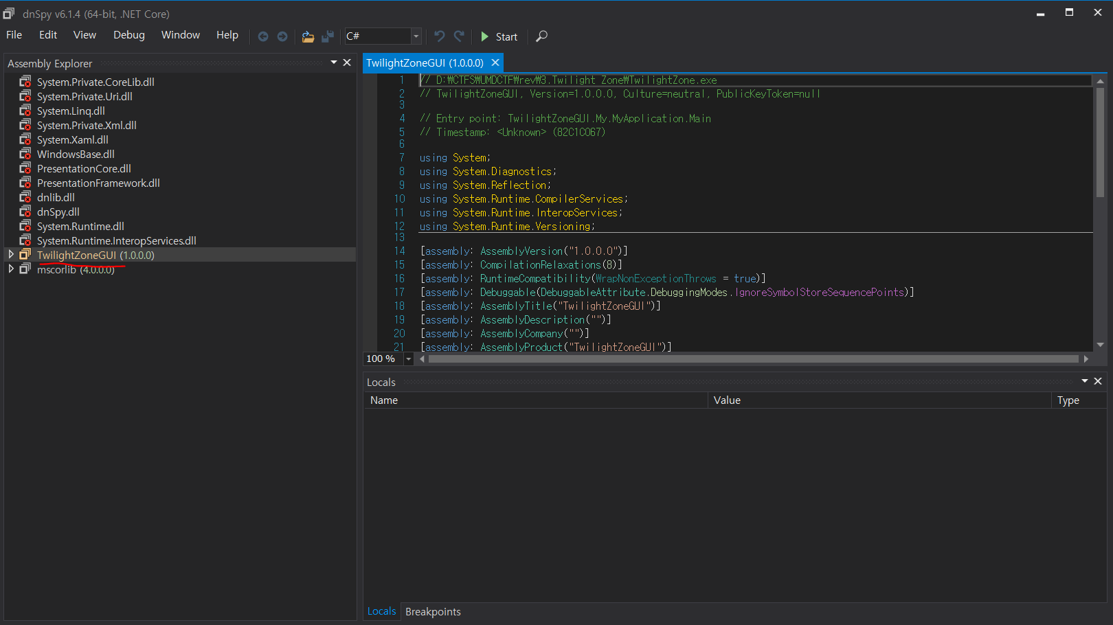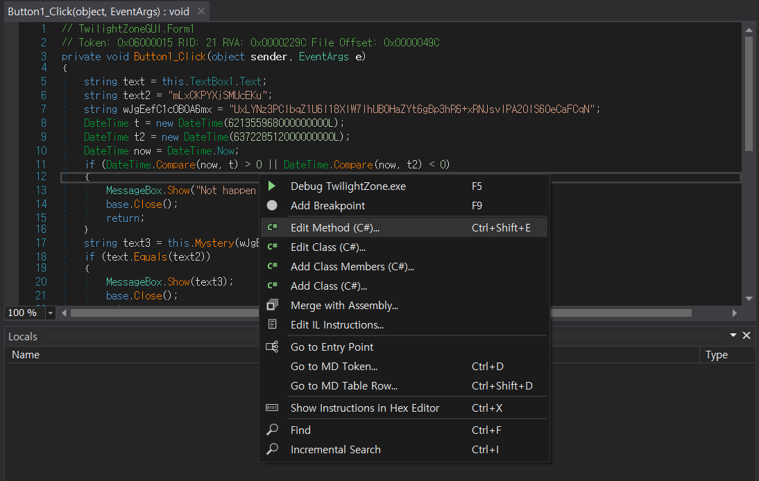 저장한 TwilightZone1.exe 를 다시 dnSpy로 열어서