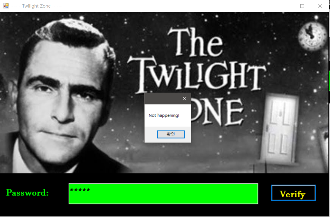 당연히 틀린 비밀번호기 때문에 Not happening! 이라는 알람창이 뜬다.