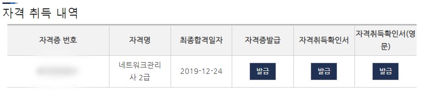 2019년 12월 크리스마스 이브에 취득한 네트워크관리사 2급