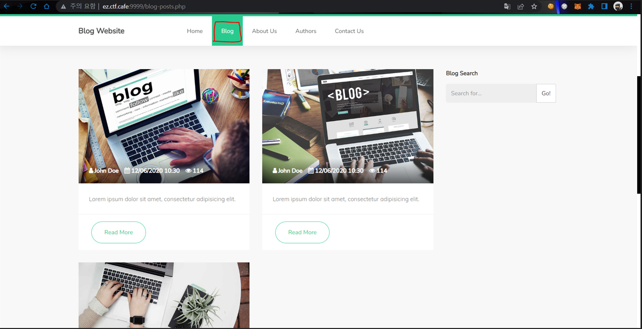 취약점이 발생하는 부분은 Blog 페이지이다.