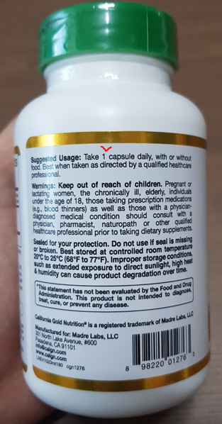 이렇게 한통에 캡슐 180정이 들어있다.