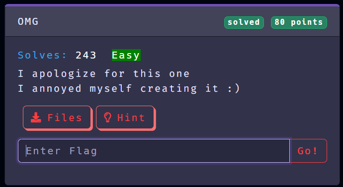 문제 파일로 OMG 라는 이름의 바이너리 파일이 주어진다.