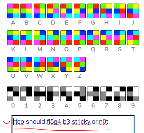 확대한 output.png에서 각각 알파벳에 맞는 패턴을 찾아서 디코딩 하는게 완전 노가다였다...