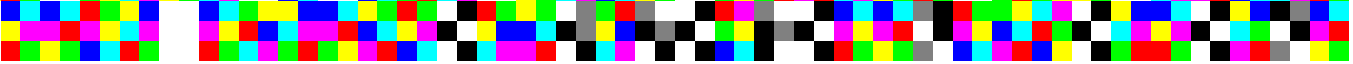 이렇게 빨강, 노랑, 초록, 파랑, 하늘, 분홍색의 조합으로 각 알파벳을 표현하고,