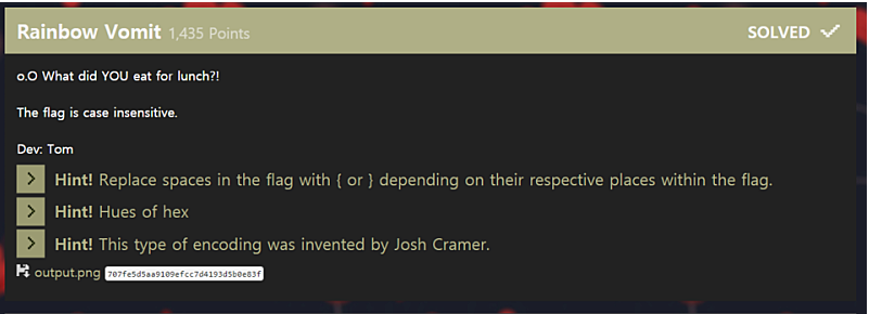 힌트에 Hues of hex 라고 적힌 부분이 있었다.