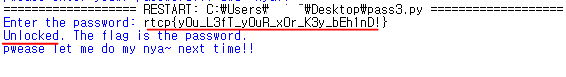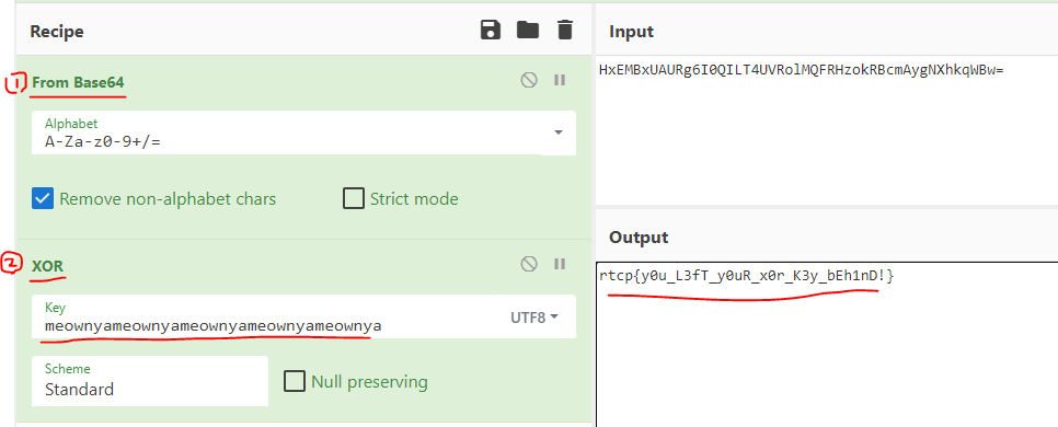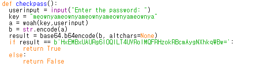 Key 값으로 meownyameownyameownyameownyameownya 을 넣어준 뒤 XOR을 해주면(2)