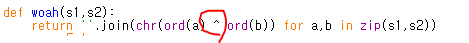 return ''.join(chr(ord(a) ^ ord(b)) for a,b in zip(s1,s2))