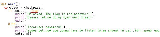 print("t-the fwlag is... the password.. nya!")