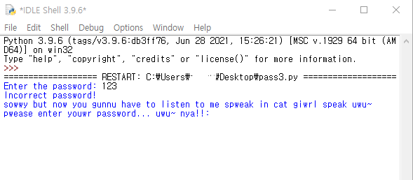 userinput = input("pwease enter youwr password... uwu~ nya!!: ")