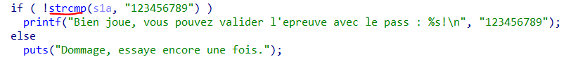 strcmp 함수로 s1a 변수와 123456789 가 같은지 확인하고 있다.