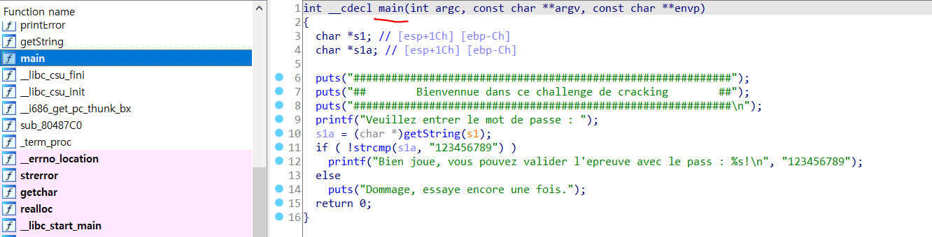 아까 봤던 Veuillez entrer le mot de passe : 를 printf 함수를 이용해 출력하고