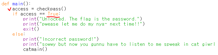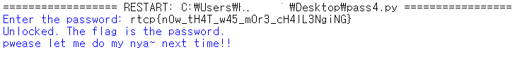 print("t-the fwlag is... the password.. nya!")