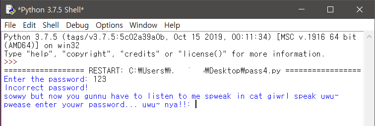userinput = input("pwease enter youwr password... uwu~ nya!!: ")