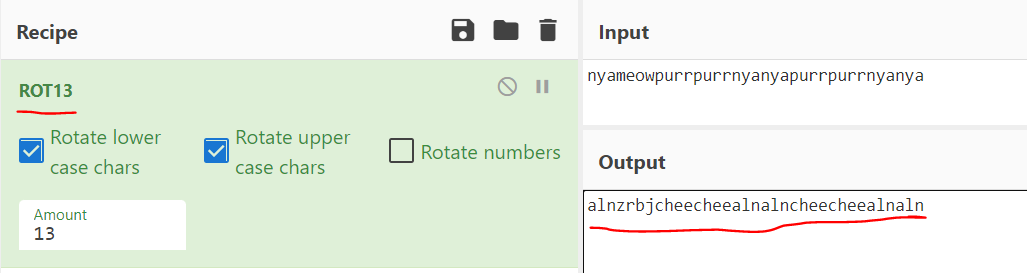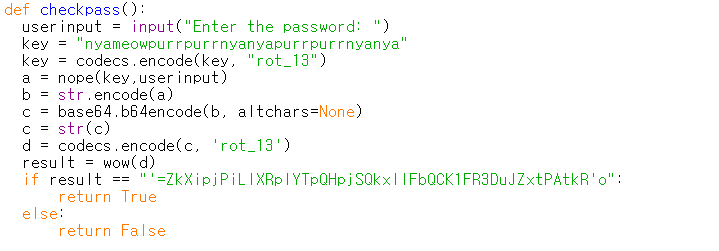 가장 먼저 key값인 nyameowpurrpurrnyanyapurrpurrnyanya를 rot13 으로 인코딩한 값을 계산해준다.