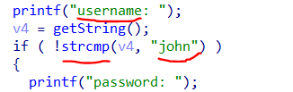 그다음 strcmp 함수로 v4와 john이 같은지 비교한다.