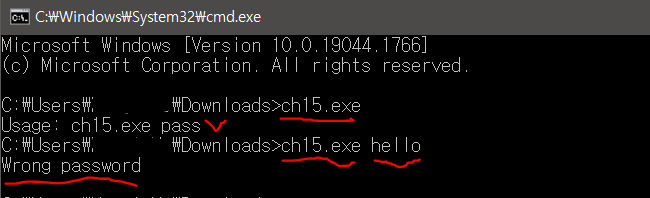 Usage : ch15.exe pass 라면서 사용법을 알려준다.