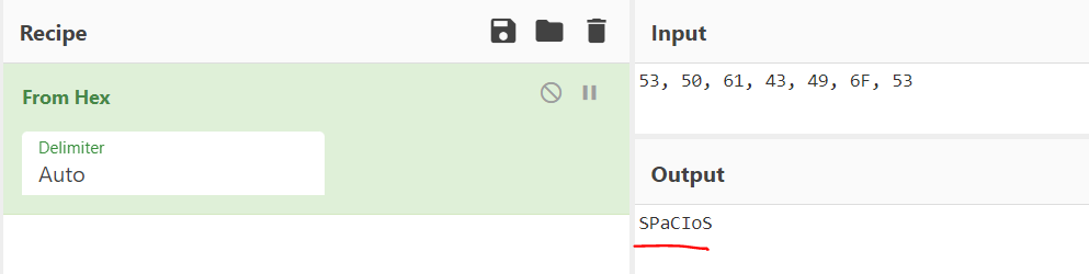 해당 16진수를 ASCII 코드로 바꿔주면 SPaCIoS 라는 단어가 나온다.