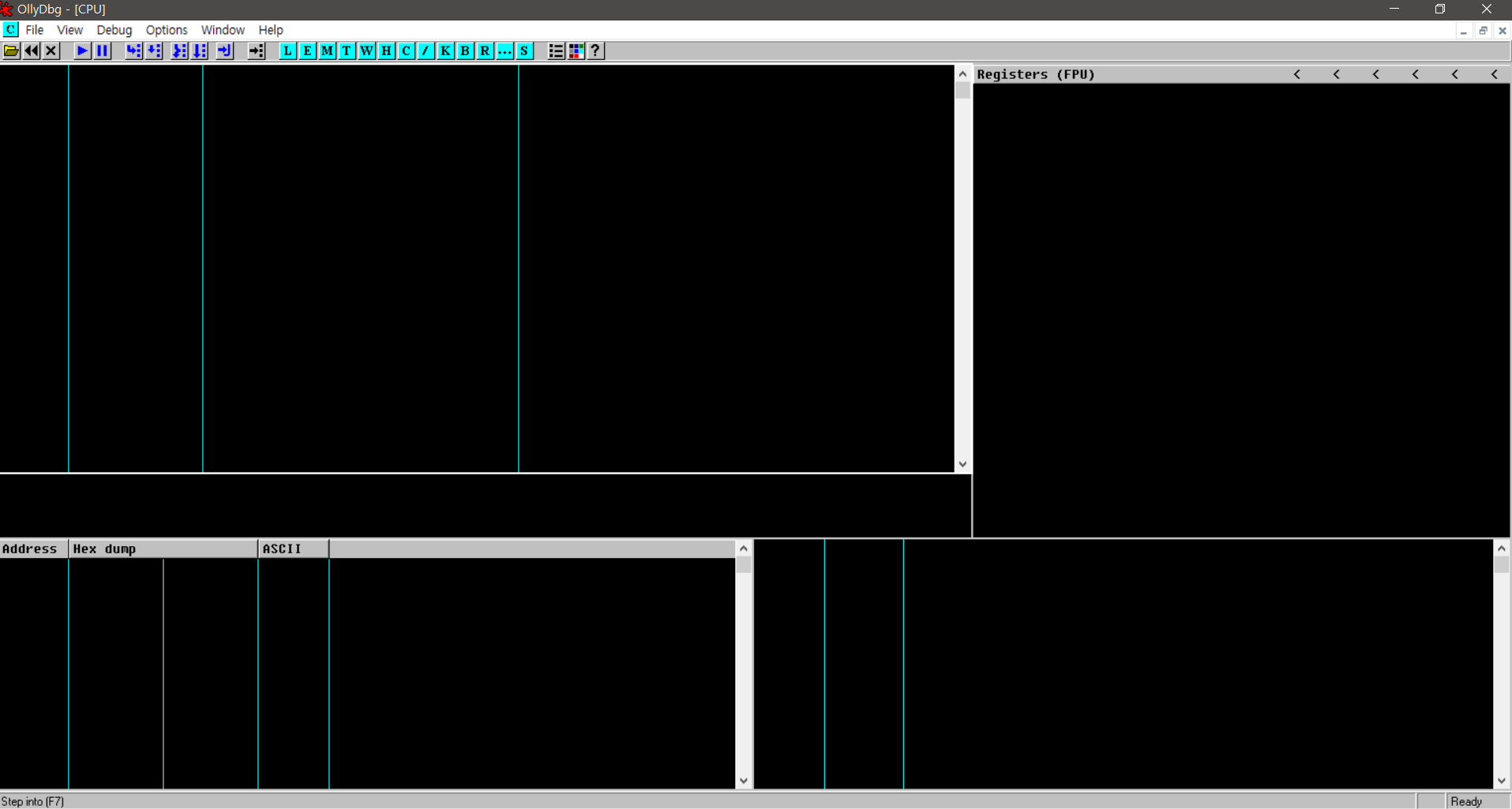 이 상태에서 스택, 레지스터, 메모리 값을 보면서 실행파일을 분석하는 것이다.