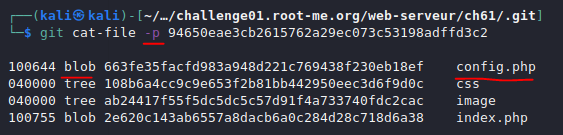 그 중 blob 객체인 config.php 가 있는것을 확인할 수 있다.