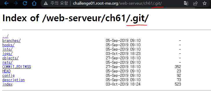 위에서 보이는것처럼 URL 맨 뒤에 .git/ 이라고 입력했을때