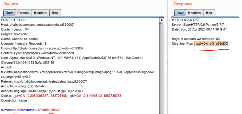 오른쪽 응답 패킷에서 플래그가 출력되는것을 확인할 수 있다.