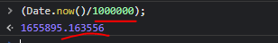 예를들어 위 사진처럼 (Date.now() / 1000000) 의 값이 1655895.163556 이 나왔다면,