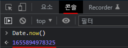 Date.now() 라고 입력해보면 저렇게 숫자로 현재시간이 출력되는것을 볼 수 있다.