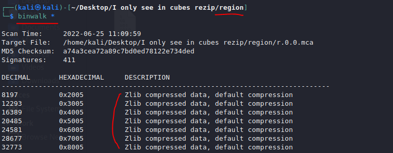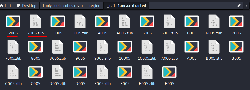 region 폴더 안에 있는 모든 mca 파일에서 Zlib 데이터를 뽑아보았다.