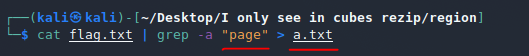 cat flag.txt | grep -a "page" 로 page 단어가 들어간 부분을 모두 찾아내서